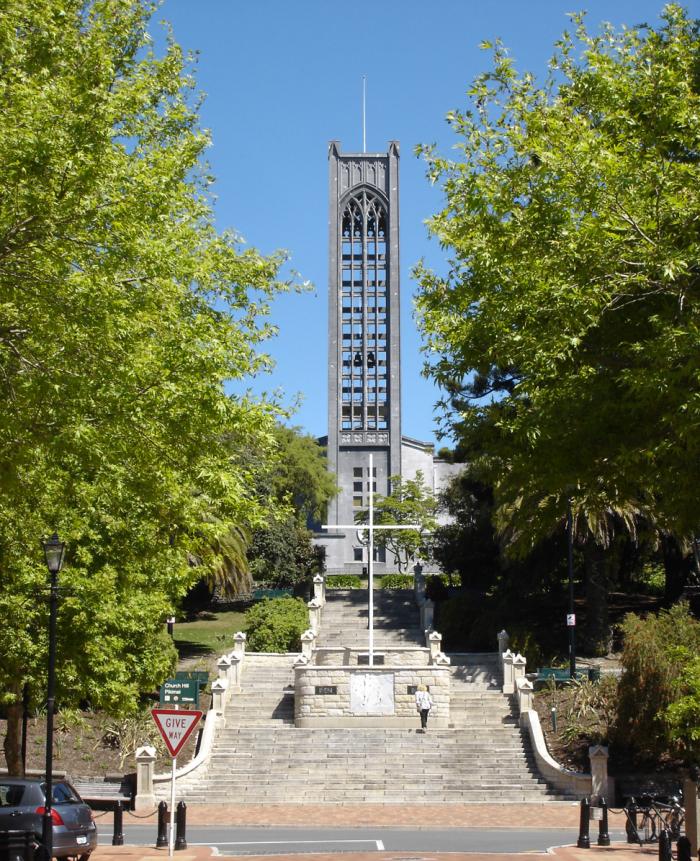 A famous view in Nelson. The end of Trafalgar Street looking up at Church Hill.
