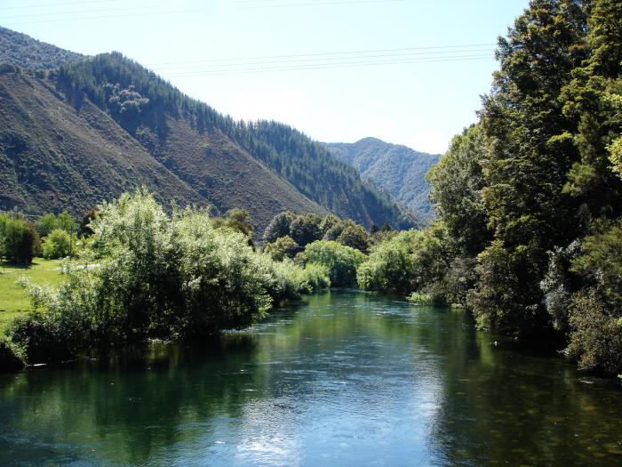 This shot of the Gowan River was taken from on the bridge just before you reach the shore of Lake Rotoroa. The Gowan river flows out from the lake and standing on the bridge we could see a few trout.