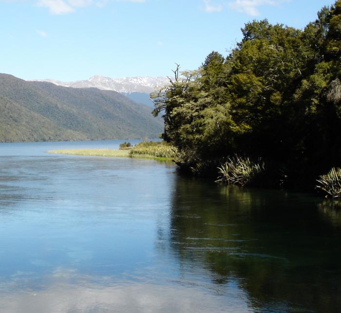 The very start of the Gowan River, flowing out of Lake Rotoroa.