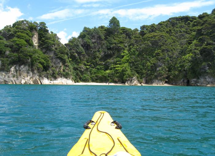 Kayaking in to another beach in the Abel Tasman National Park.