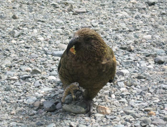 Kea eating a bit of my apple on the Kepler Track, Fiordland. The Kea (Nestor notabilis) is one of seven parrot species endemic to New Zealand.