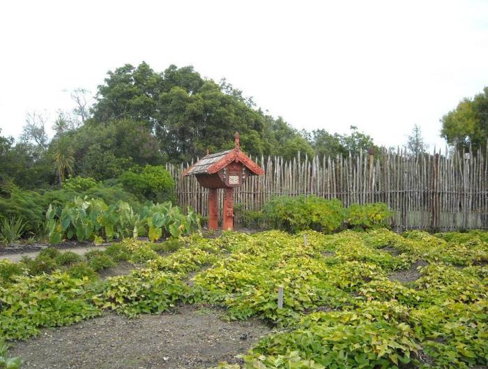 Hamilton Gardens, Te Parapara Maori Garden kumara patch, planted according to Matariki tradition and first harvested in April 2009.