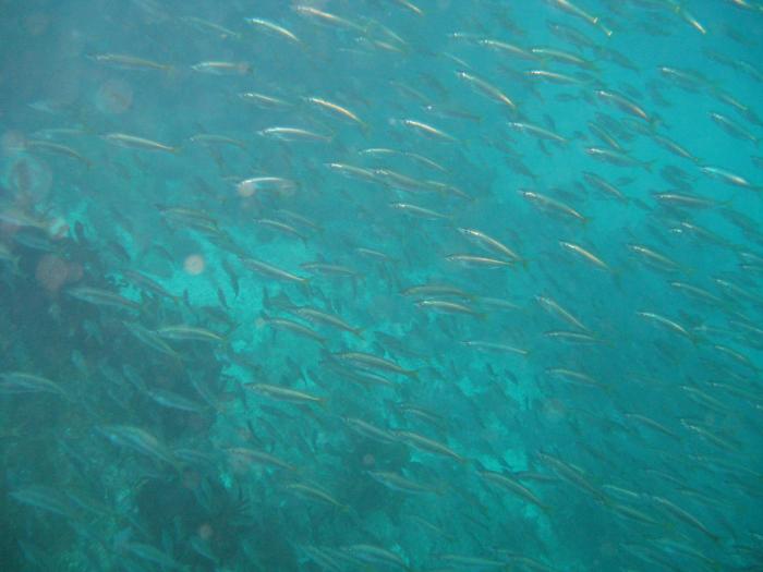 A school of fish photographed while scuba diving in Milford Sound 2009.