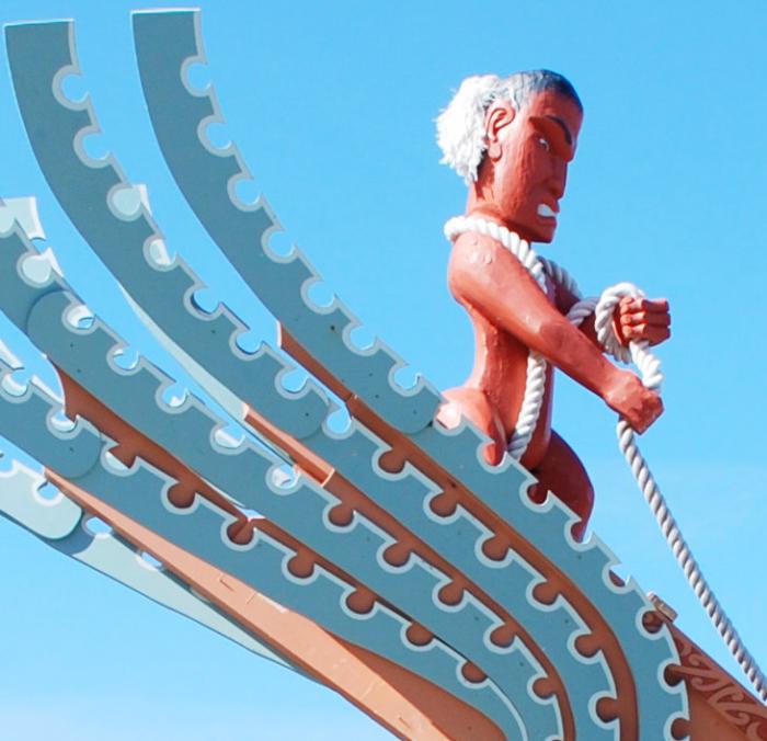 A close up of the Maori sculpture in South Bay, Kaikoura.