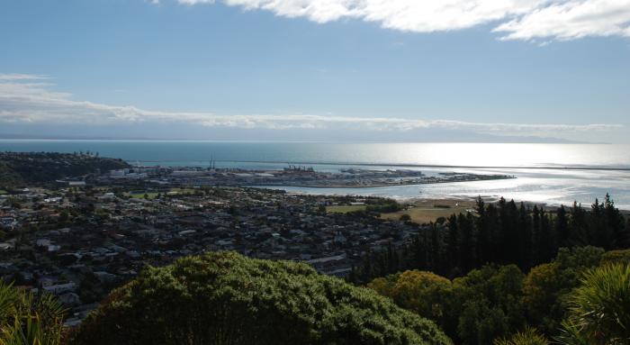 A view out from the Centre of New Zealand walkway. You can see Nelson, Nelson Port, the Boulder Bank and right out over the Tasman Bay.
