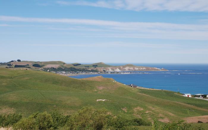 This photo was taken from the Ocean Ridge subdivision in Kaikoura. There's Kaikoura Winery in the foreground on the right and then looking out to South Bay.