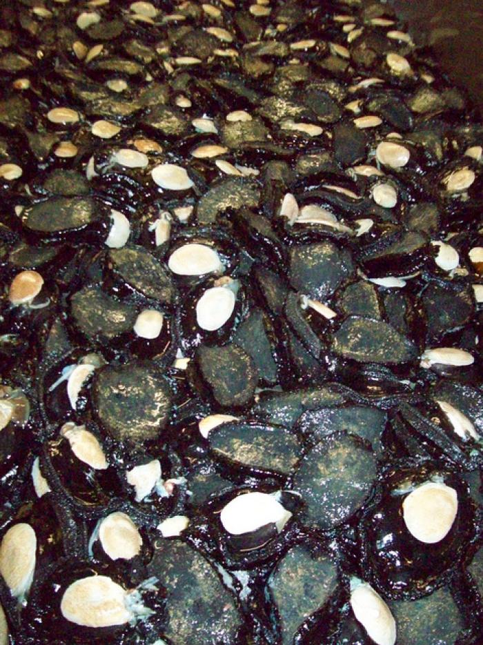 That's a lot of paua, commercial shucking in operation