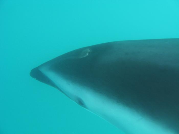 A dusky dolphin swims by just inches below me. This photo was taken on a recent trip out swimming with the dolphins. I'd highly recommend doing a swim with the dolphins run by Dolphin Encounter, Kaikoura, New Zealand.